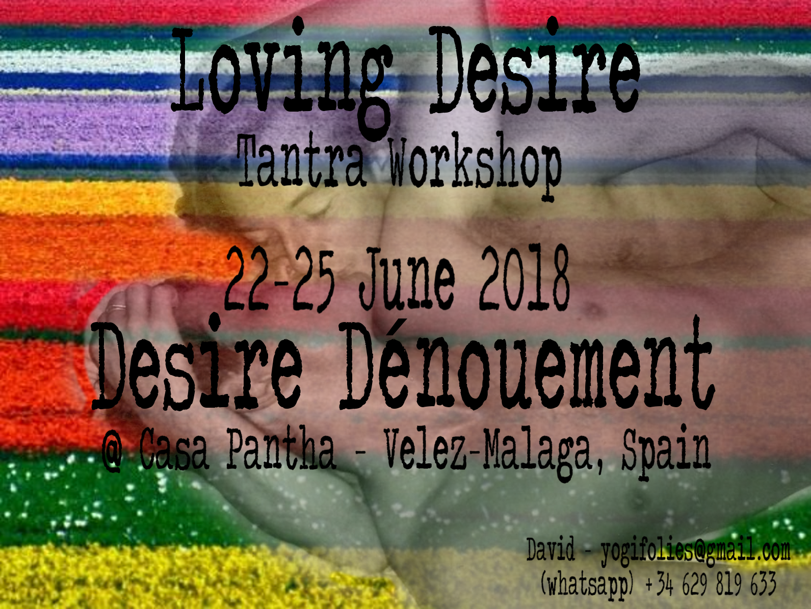 Our fourth yoga-tantra adventure is designed to appeal equally to those who want to develop and broaden the discoveries of our earlier events and to those who want to join us for the first time. While exploring new ways to work with life force, energy and concepts of wholeness, Desire Dénouement will also expand on the themes of our previous retreats (Seeds of Desire and Aspects of Self Love in late 2017 and Love Unlimited in early 2018). In this case, ‘dénouement’ refers to the principle that tantric experience reaches its full intensity and impact (its climax) only when shared with and offered to others with warmth, generosity and care and through the affect we can have on them.